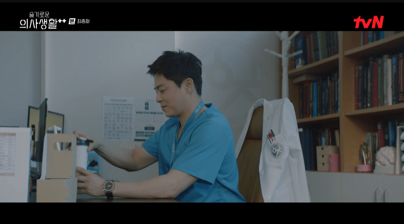 오늘도 바쁜 99즈의 일상이 시작되었습니다. 송화가 응급수술을 들어간 사이 여기저기 커피 셔틀을 하는 이익준. 기분이 좋아 보이네요. 유일하게 채송화에게 자리에 두고 가는 커피에만 메시지를 남깁니다. 저녁쯤 수술이 끝난다며 이따 보자는 메시지의 끝에는 하트 표시가 있었어요. ㅎㅎ