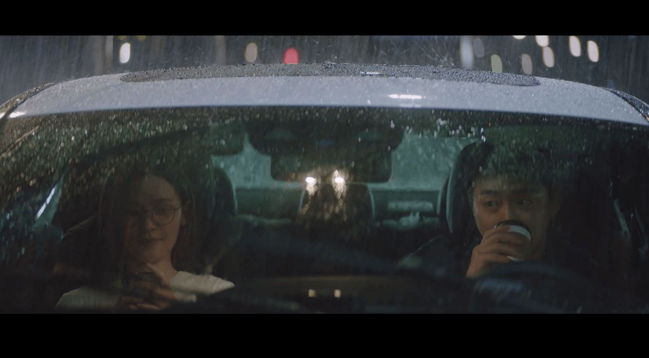 같이 차를 타고 가는 채송화와 이익준. 그때 갑자기 비가 내리기 시작했고 채송화는 비 구경을 하고 가자고 했어요. 커피를 사 와서는 바로 출발하려는 이익준에게 안 급하다며 마시고 출발하자는 채송화였죠.