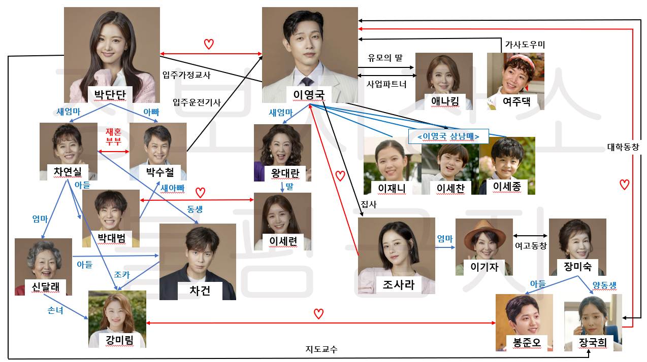차건(강은탁)은 박단단의 새엄마인 차연실의 엄마인 신달래의 아들입니다. 즉 차연실의 남동생이자 박단단의 의붓외삼촌이죠.