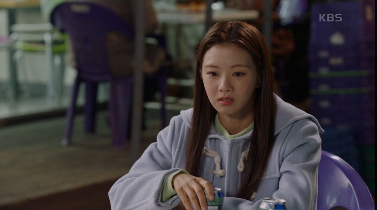 이영국과 박단단은 다시 또 편의점에서 만나는 것 같았어요. 이영국은 친구 얘기라며 박단단에게 무언가 얘기를 하는 것 같습니다.