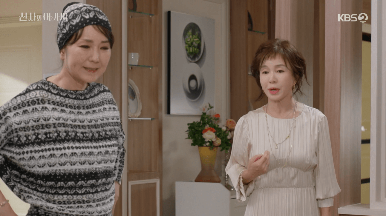 이기자는 장미숙에게 너 덕분에 사위 덕 보고 살겠다며 고맙다고 했어요. 같은 과부로 서로 의지하고 사는 두 사람. 서로에게 고맙다며 평생 함께하자고 했죠.