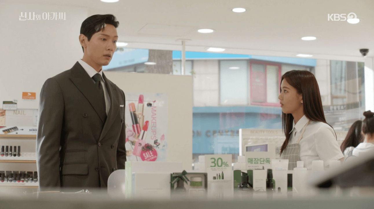 이영국은 딸 재니에게 사과를 하고 싶었는지 화장품 가게에 갑니다. 거기서 일을 하고 있는 박단단과 마주치죠. 치료비를 못 줘서 걱정돼 잠도 못잤다는 박단단에게 어린 학생들에게 이렇게 화장품을 팔아도 되는거냐고 하더니 나가버리는 이영국 이었습니다.
