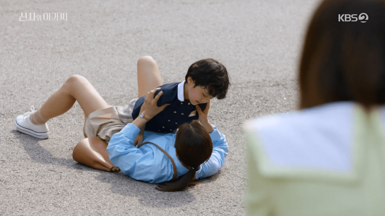 조사라와 함께 집에 가던 이영국 막내 아들 이세종. 공을 쫓아가다 차에 치일뻔합니다. 그런 이세종을 박단단이 몸을 날려 구해주었어요.