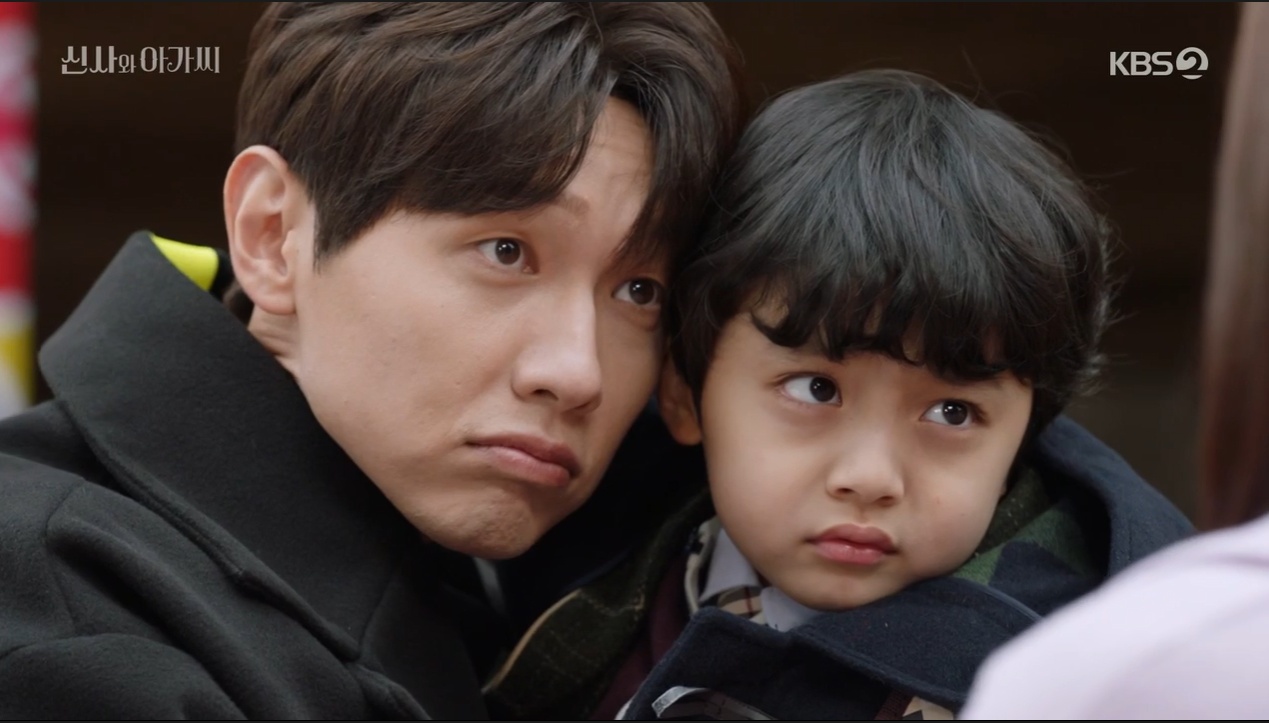 세종이는 유치원이 끝나고 그냥 집에 가기 싫다며 박단단에게 놀자고 하고 있었어요. 그 때 이영국이 나타나서는 같이 놀자고 했죠. 박단단은 둘이 놀라고 했지만 세종이는 선생님과 같이 놀고 싶다며 떼를 쓰는 모습이었어요.