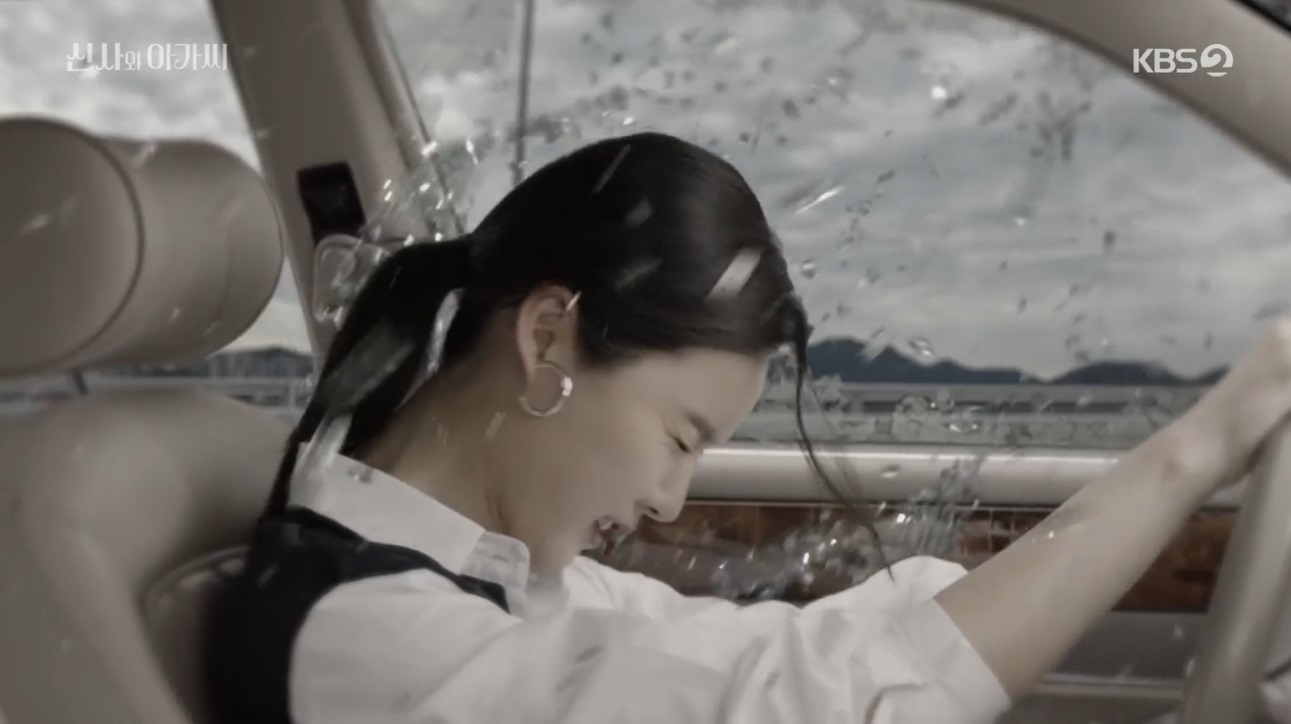 차를 타고 가다 애나킴은 박수철에게 이름을 물었어요. 이름이 박수철이라는 말에 멀미가 나는지 차를 세워달라고 했어요. 충격을 많이 받은 것 같았습니다.