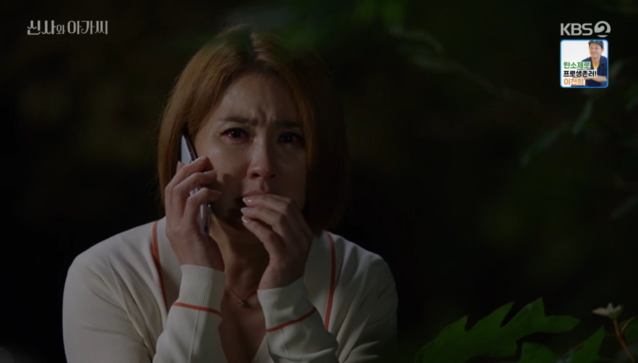 애나킴은 박단단이 누구인지 알게 되었어요. 이영국의 집으로 들어가는 박단단의 모습을 보고 눈물을 흘리는 모습이었죠.