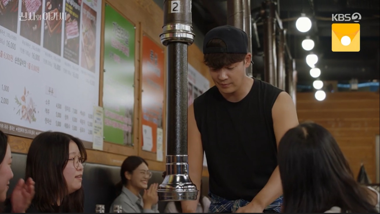 차건은 고깃집에서 일을 했어요. 차건에게 반한 여자 손님들이 고기 주문을 자꾸 해대면서 차건은 사장님의 사랑을 받게 되었죠.