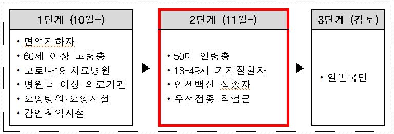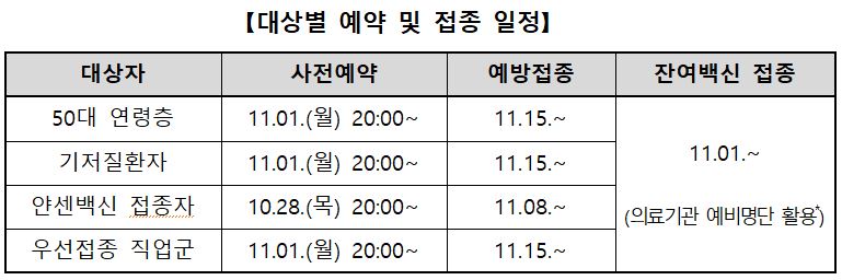 나머지 대상자의 경우에는 11월 1일 월요일 사전예약 진행, 11월 15일부터 접종이 실시됩니다.