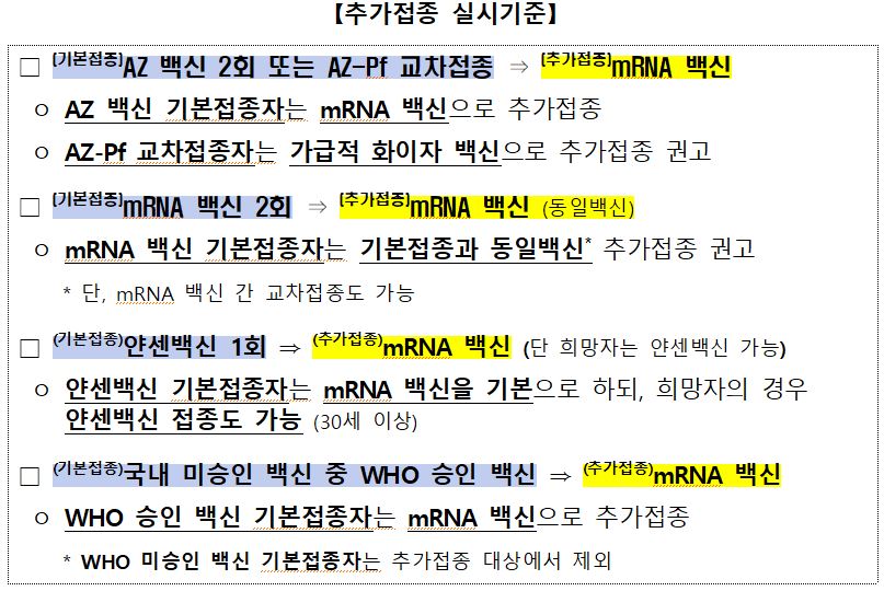 부스터샷 백신 종류 기준은 아래와 같습니다.