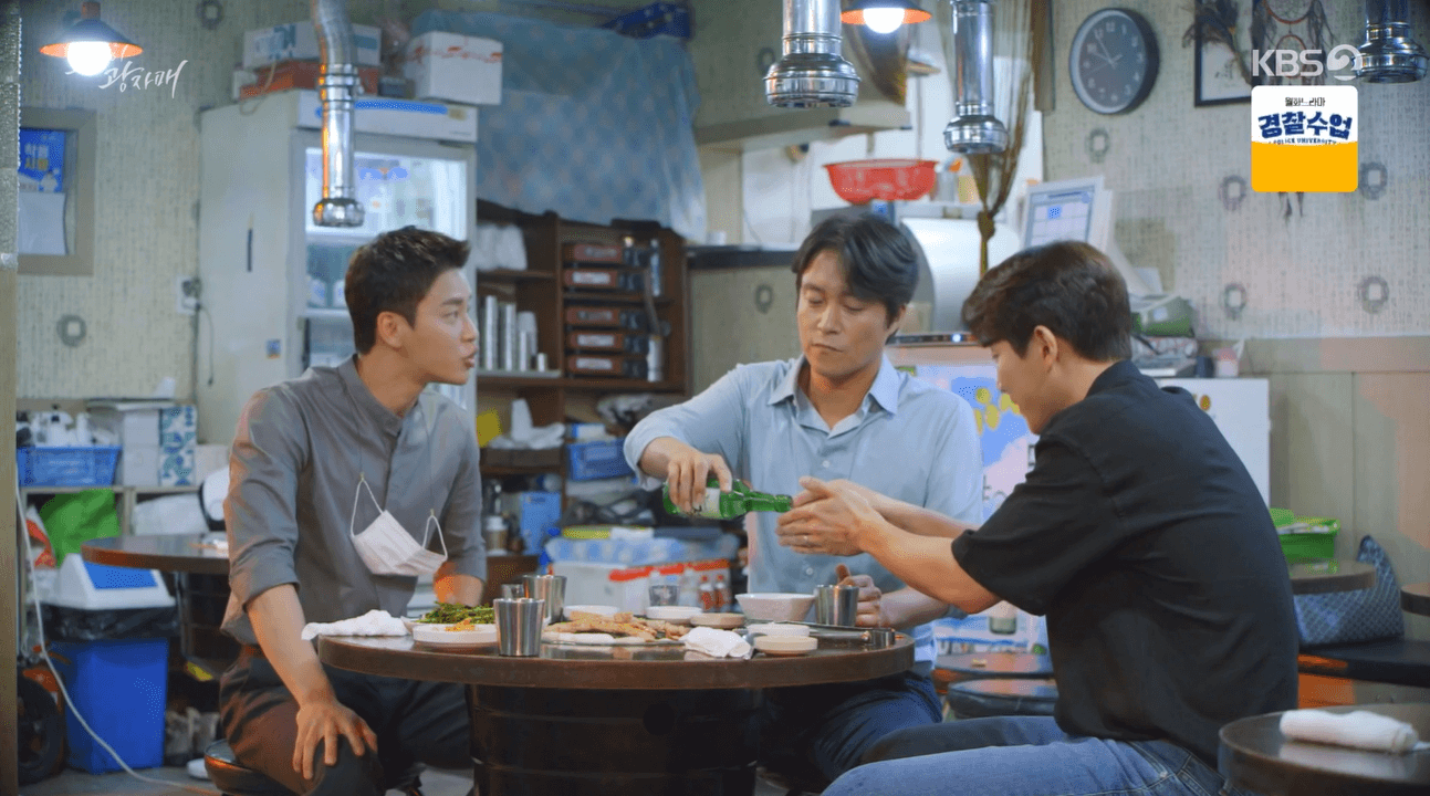 허기진의 건물으로 들어가게 된 배변호의 로펌 사무실. 두 사람은 한 잔을 하게 되었고 한예슬까지 불러서 저녁식사를 가지게 되었어요. 여전히 한예슬에게 당연하다는 듯이 곱창을 굽게 하는 허기진. 정말 얄미웠습니다.