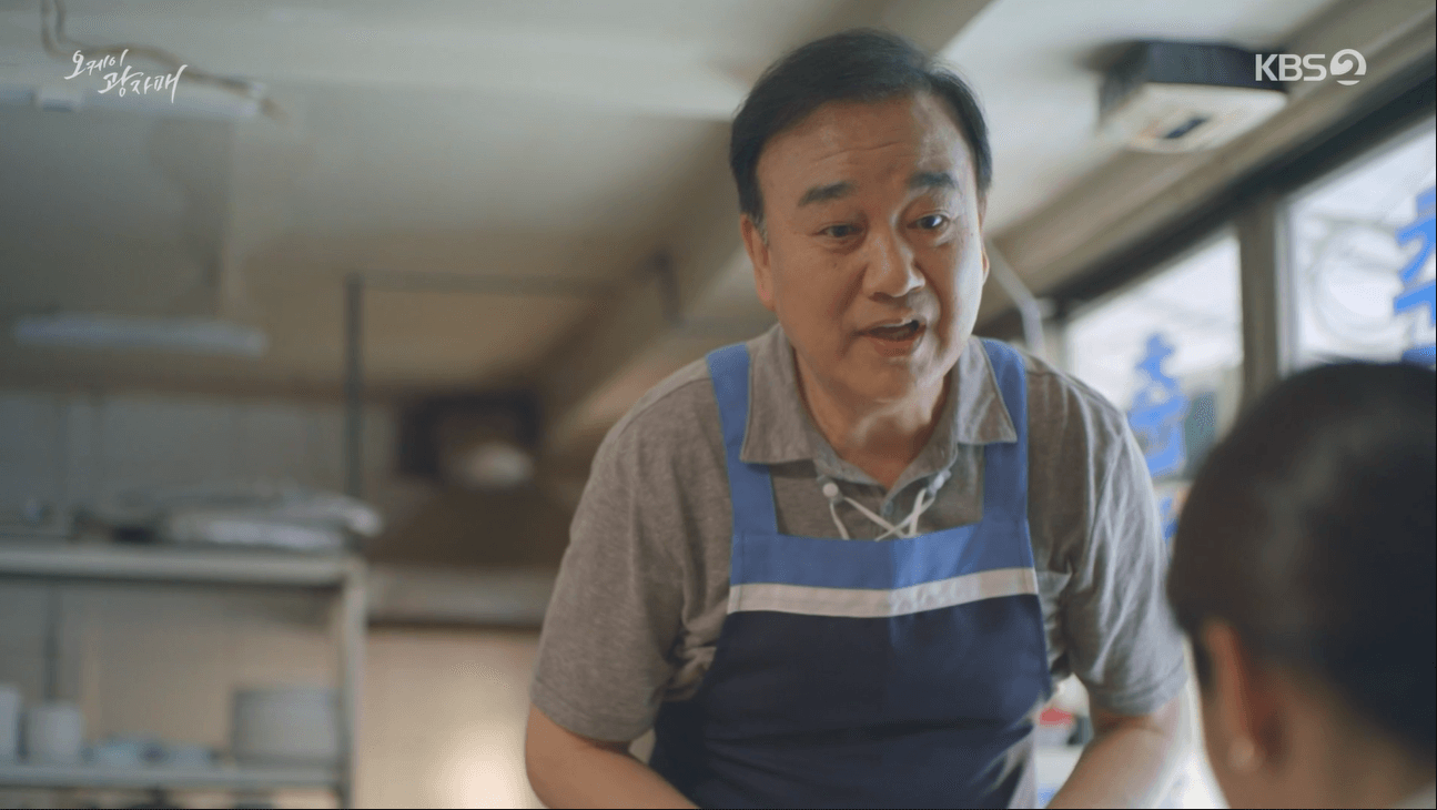 이 사람이 친딸과 손녀딸과 화기애애한 모습을 본 이광식은 주문한 음식을 먹지 않고 가게를 나와버립니다. 이 남자는 이광식을 쫓아와서는 한입도 안 먹었던데 돈을 받을 수 없다며 이광식이 두고 온 돈을 돌려주는 모습이었습니다. 이광식과 많이 닮은 것 같네요.