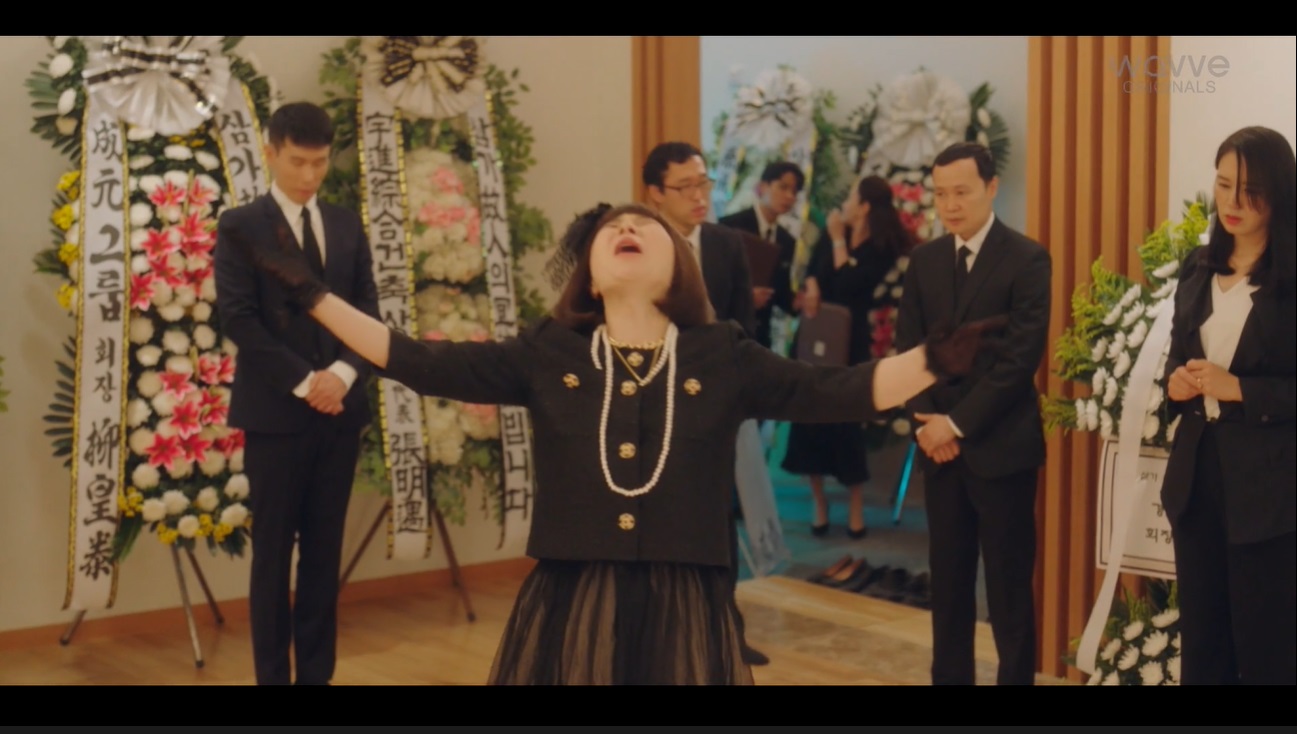 유민그룹 강장수 회장의 여동생이자 유민재단 이사장인 강은화는 강장수 회장 장례식장에 가 슬픈 척 연기를 하는 모습이었어요.