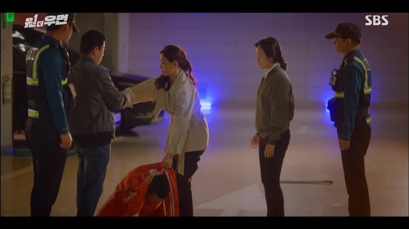 한성혜로부터 도망가던 강미나는 삼거리파 조폭들에게 막히지만, 그 때 등장한 한승욱과 왕필규, 최대치의 도움으로 삼거리파로부터 도망치는데 성공했어요. 그리고 주차장에 조연주가 나타나 강미나를 태워줬죠.