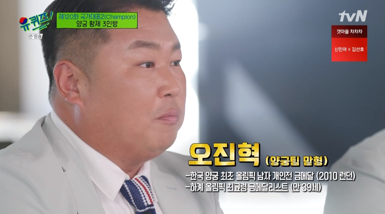 양궁팀의 맏형인 오진혁 선수는 2010 런던 올림픽에서 한국 양궁 최초로 올림픽 남자 개인전 금메달을 획득했던 선수로, 만 39세의 나이로 금메달을 획득한, 하계 올림픽 최고령 금메달리스트 입니다.