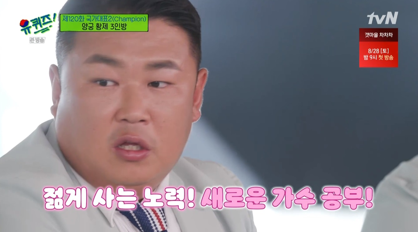 세대 차이를 느끼지 않았냐는 말에 맏형 오진혁 선수는 느끼지 못했다고 하는데요, 항상 젊게 살기 위해 새로운 가수에 대해 공부를 하는 등 노력을 한다고 하네요 ㅎㅎ