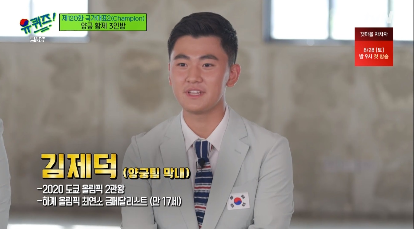 마지막으로 양궁팀의 막내이자 2020 도쿄 올림픽 2관왕, 만 17세의 나이로 금메달을 딴 하계 올림픽 최연소 금메달 리스트 김제덕 선수까지 소개 되었습니다.