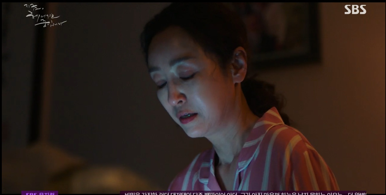 이어진 지금 헤어지는 중입니다 9회 예고에서는 민여사가 하영은에게 어떤 마음이냐고 물었고 하영은은 사랑이라고 대답하는 모습이었어요.