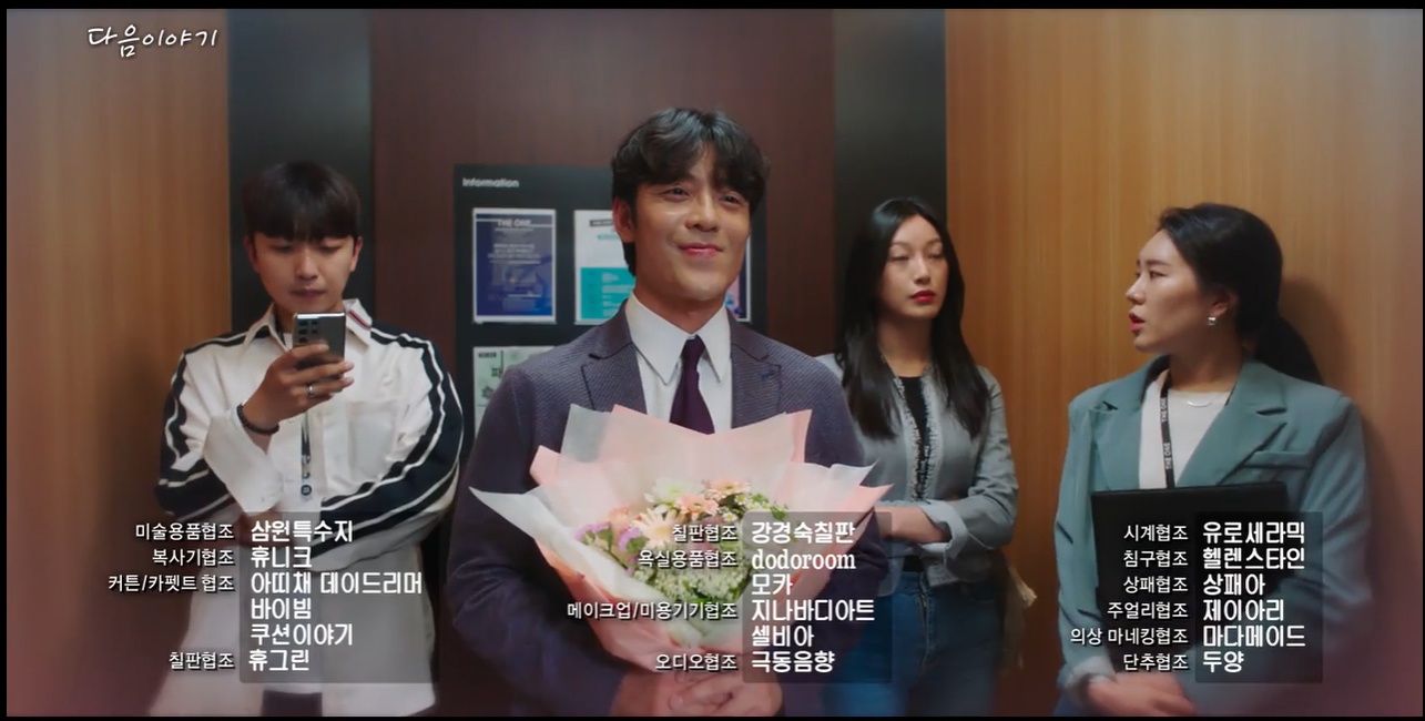 석도훈은 꽃을 사들고 황치숙을 찾아가는 것 같았어요. 분위기상 엘리베이터에서 뭔가 들으면 안될 이야기를 듣는 것 같네요.