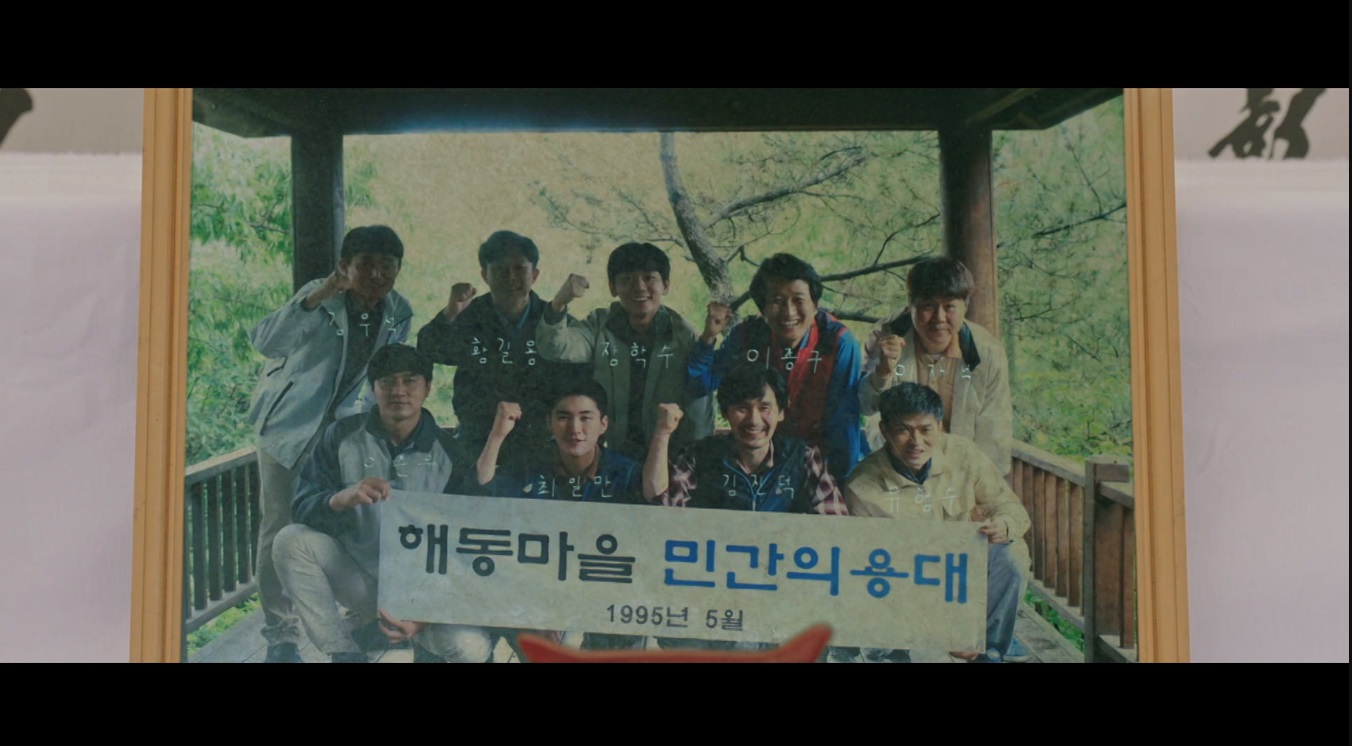 한편 마을 제사 준비를 돕던 강현조는 해동마을 민간의용대 단체사진을 보게 되었어요. 그 사진속의 사람들 중에는 최근에 산에서 죽은 사람들이 셋이나 포함되어 있었죠. 왜 이 사람들이 같이 있는 것인지 의문을 갖게 된 강현조였습니다.