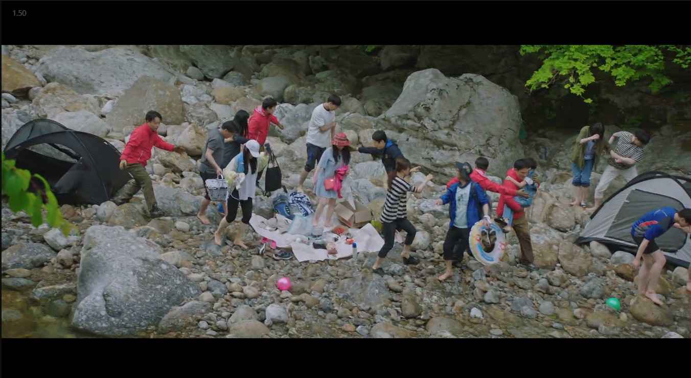갑자기 예상 강수량 전광판의 숫자가 급격히 올라가기 시작했어요. 그리고 위쪽에서부터 계곡물이 엄청 쏟아져 내려왔죠. 박일해는 사람들에게 계곡에서 피하라며 소리칩니다.