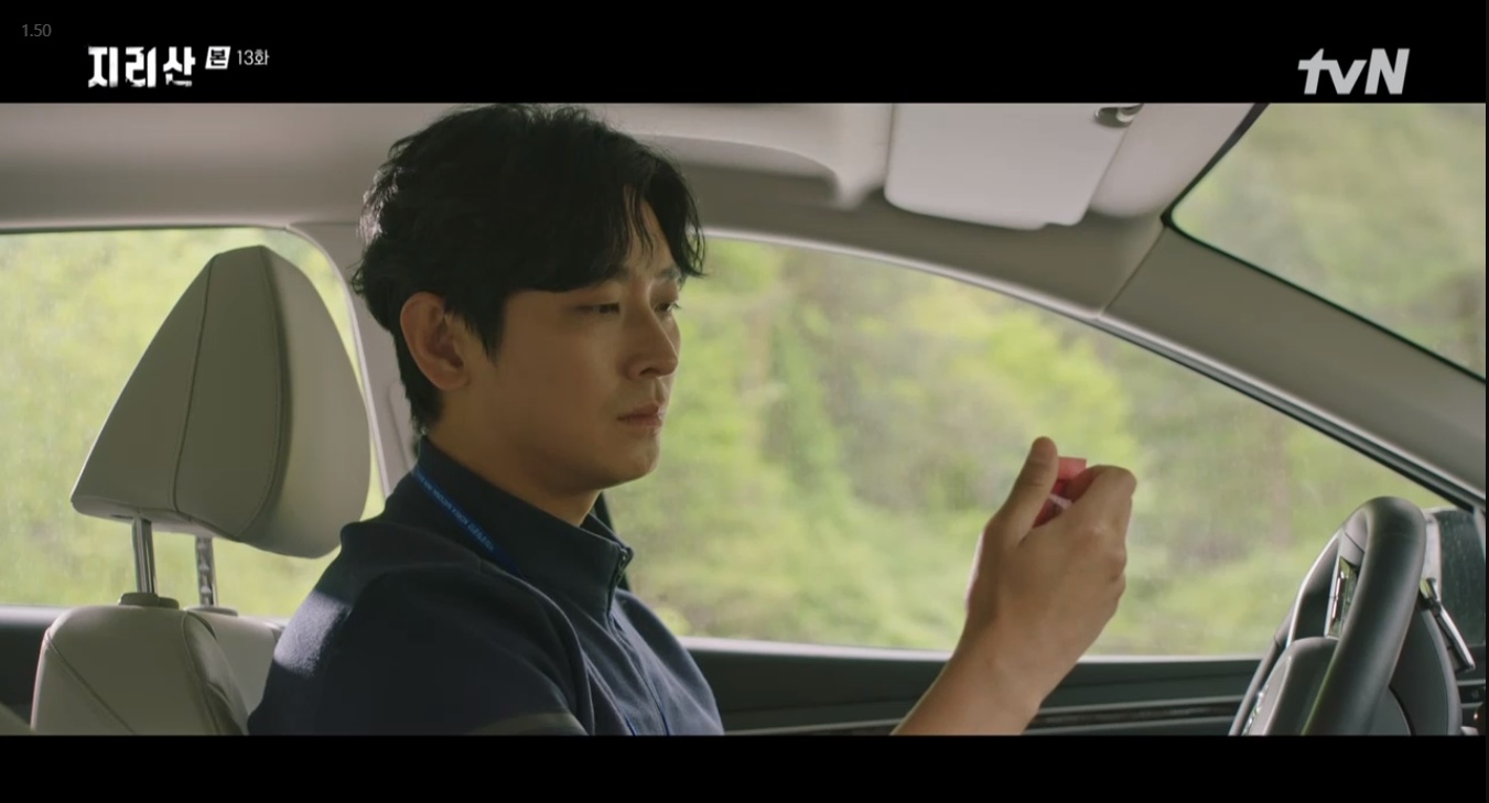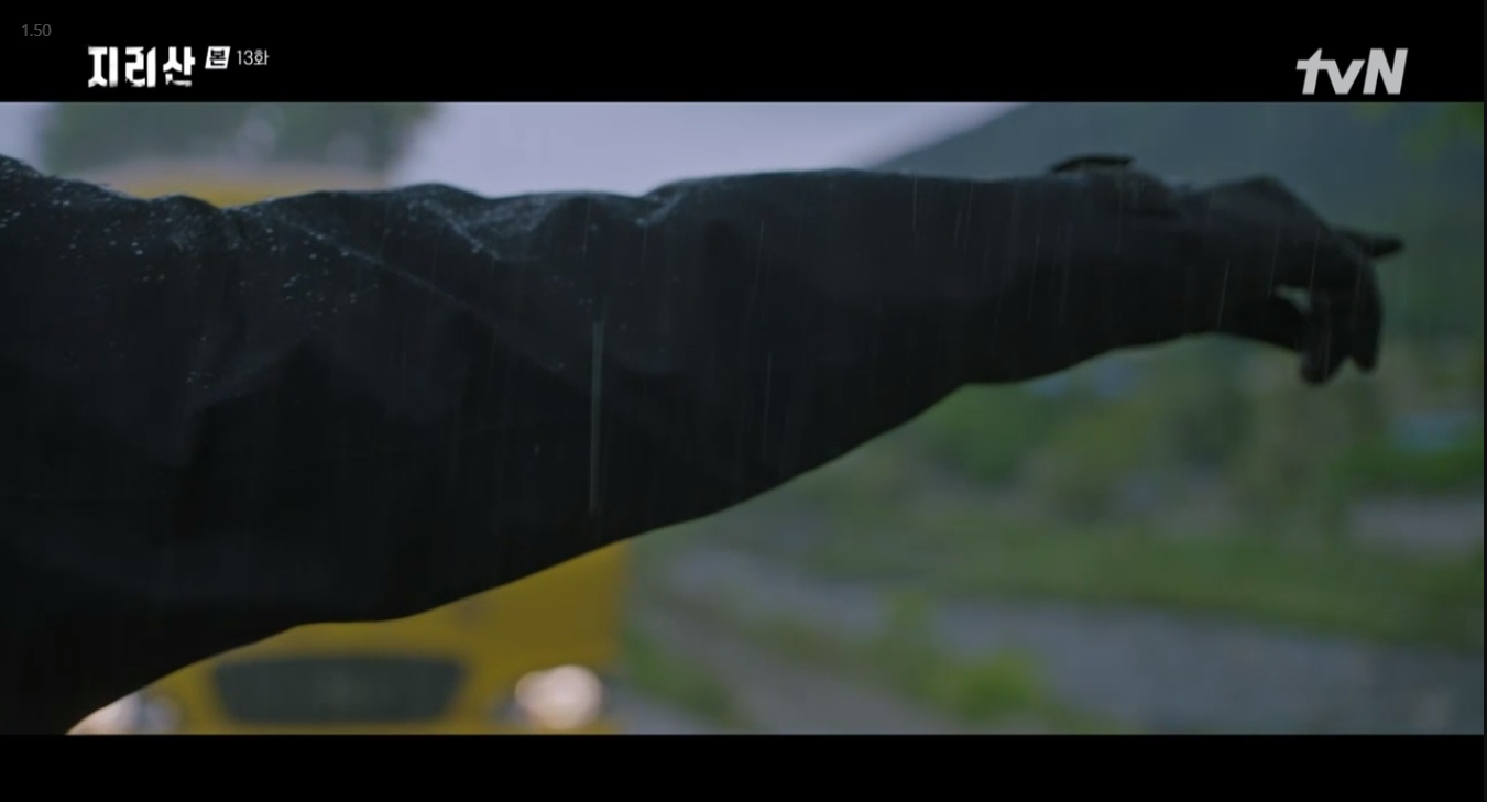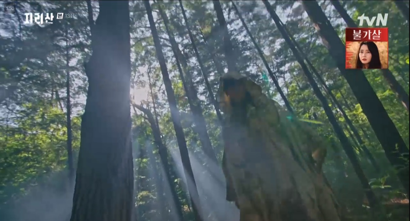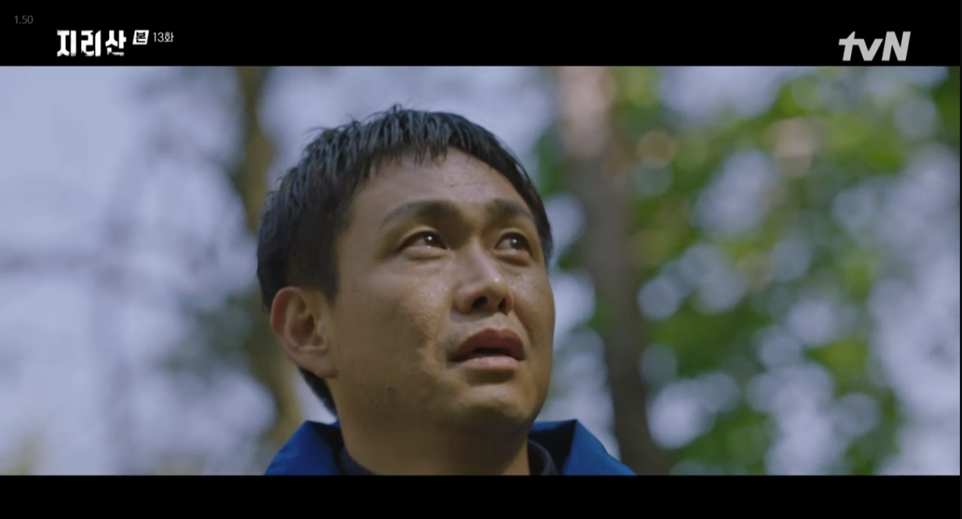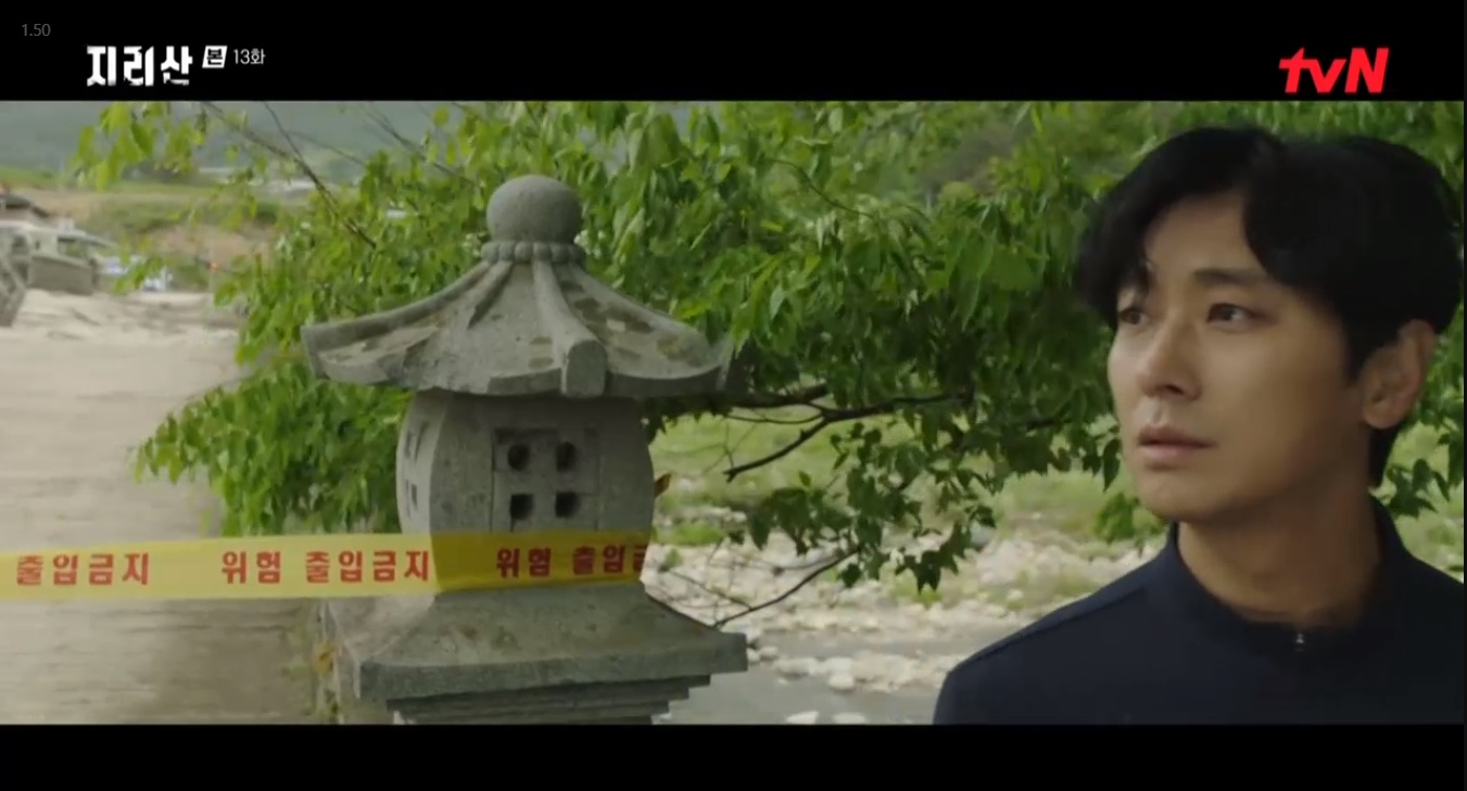 강현조 귀신이 서이강이 산에 있다는 것을 알게 되고 서이강을 찾아 나서는 모습, 그리고 서이강이 누군가가 본인에게 접근하는 것을 느끼고 전기충격기를 들고 방어 태세를 취하는 모습으로 지리산 13회는 끝이 납니다.