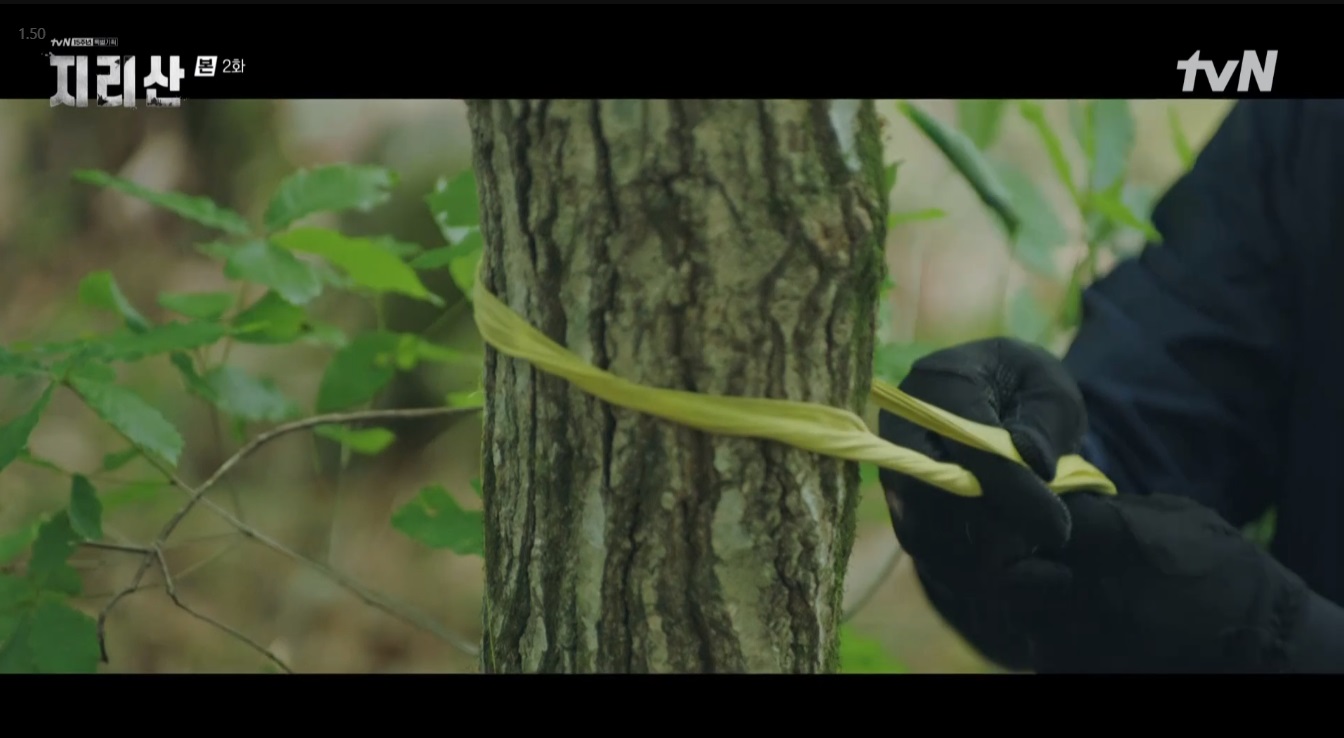 그리고 다시 2년 전. 강현조와 서이강은 불법 산행팀을 잡으려 산을 오르고 있었어요. 그 곳에는 빨간 끈이 매어져있었죠. 불법 산행팀들이 정상으로 향하는 길을 알리기 위해 매는 것이라고 했어요.