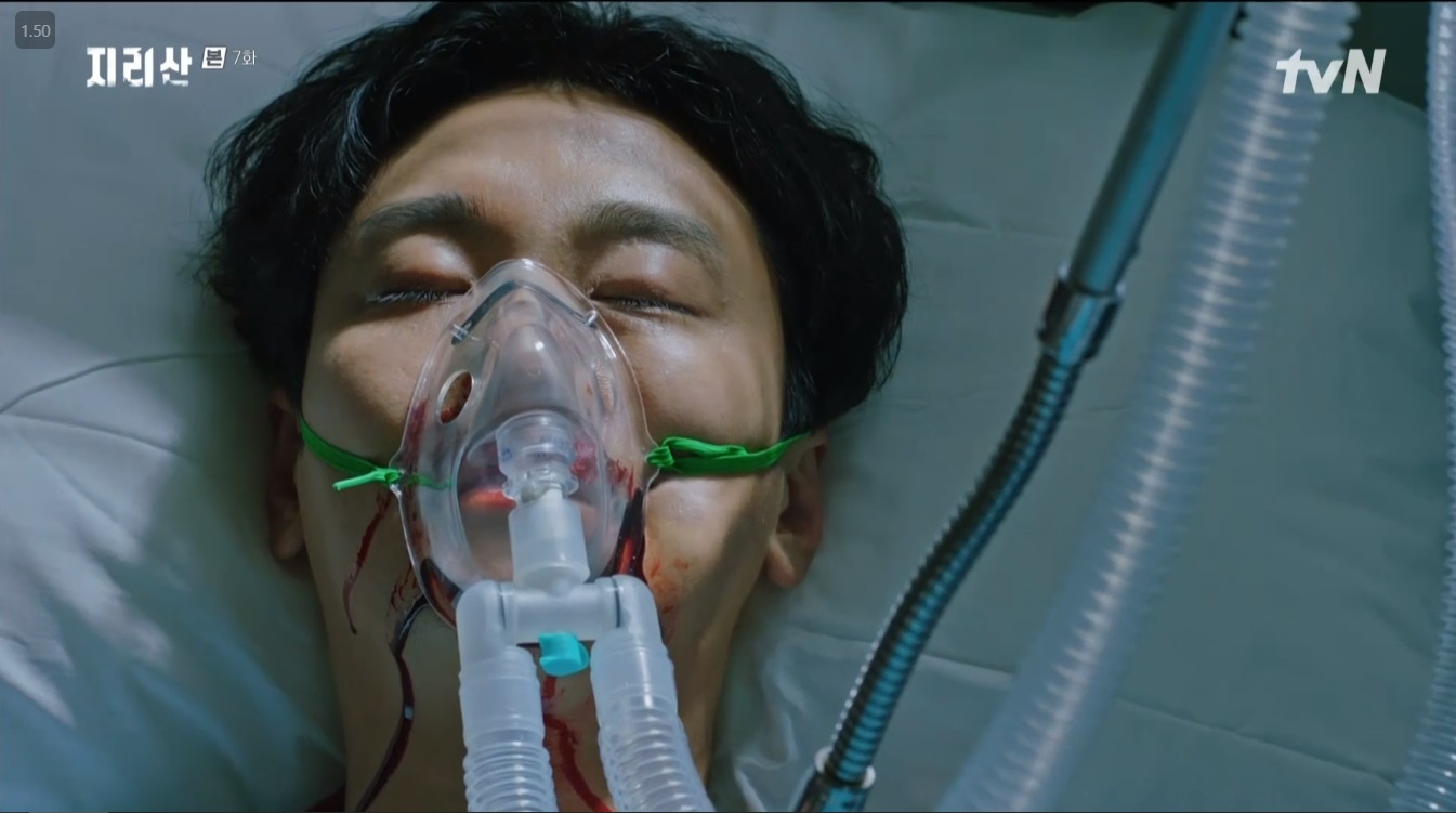 강현조 귀신이 지리산에서 분노하고 있을 때 병원에 있는 강현조의 신체에도 이상이 생긴 것 같았어요. 피를 마구 쏟는 모습이었죠.