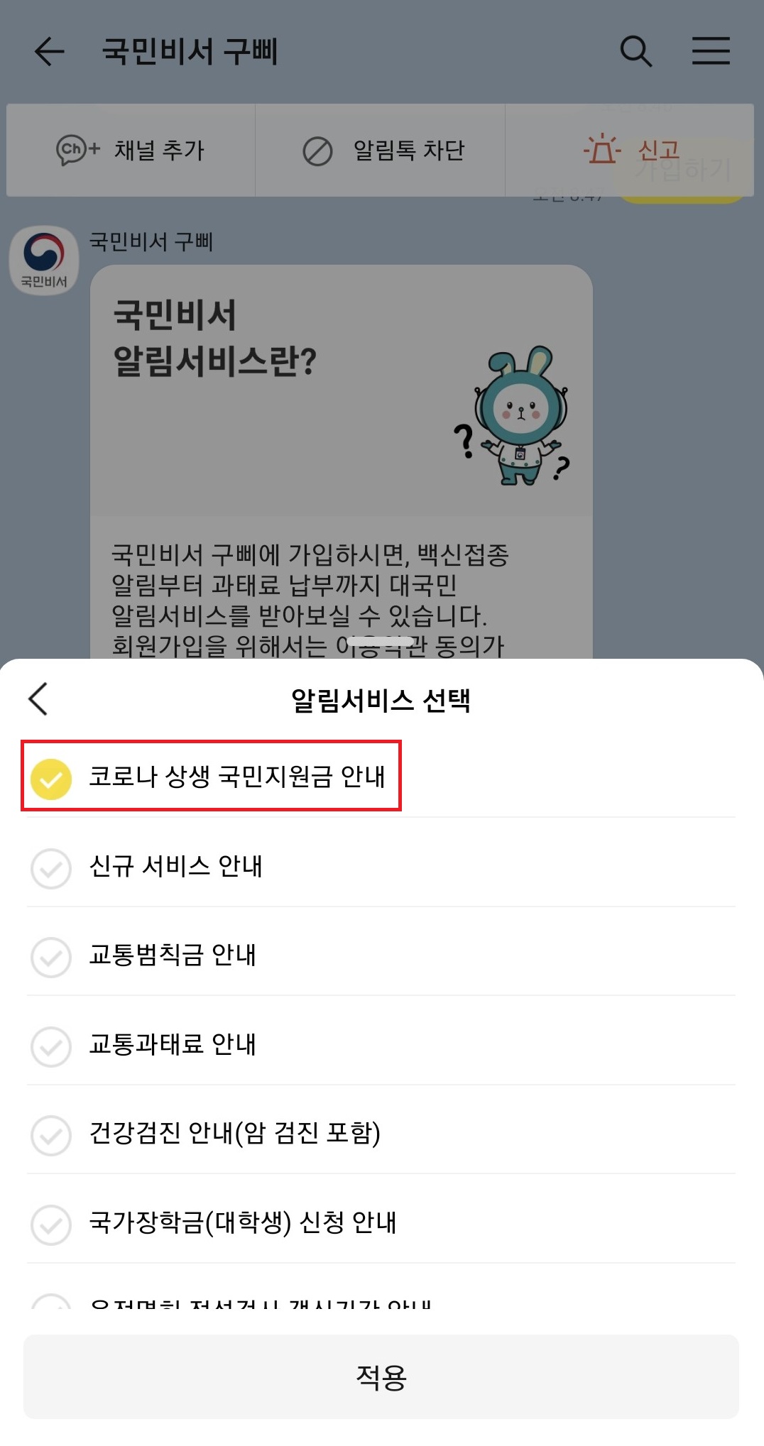 <국민비서 코로나 지원금 알림 서비스>