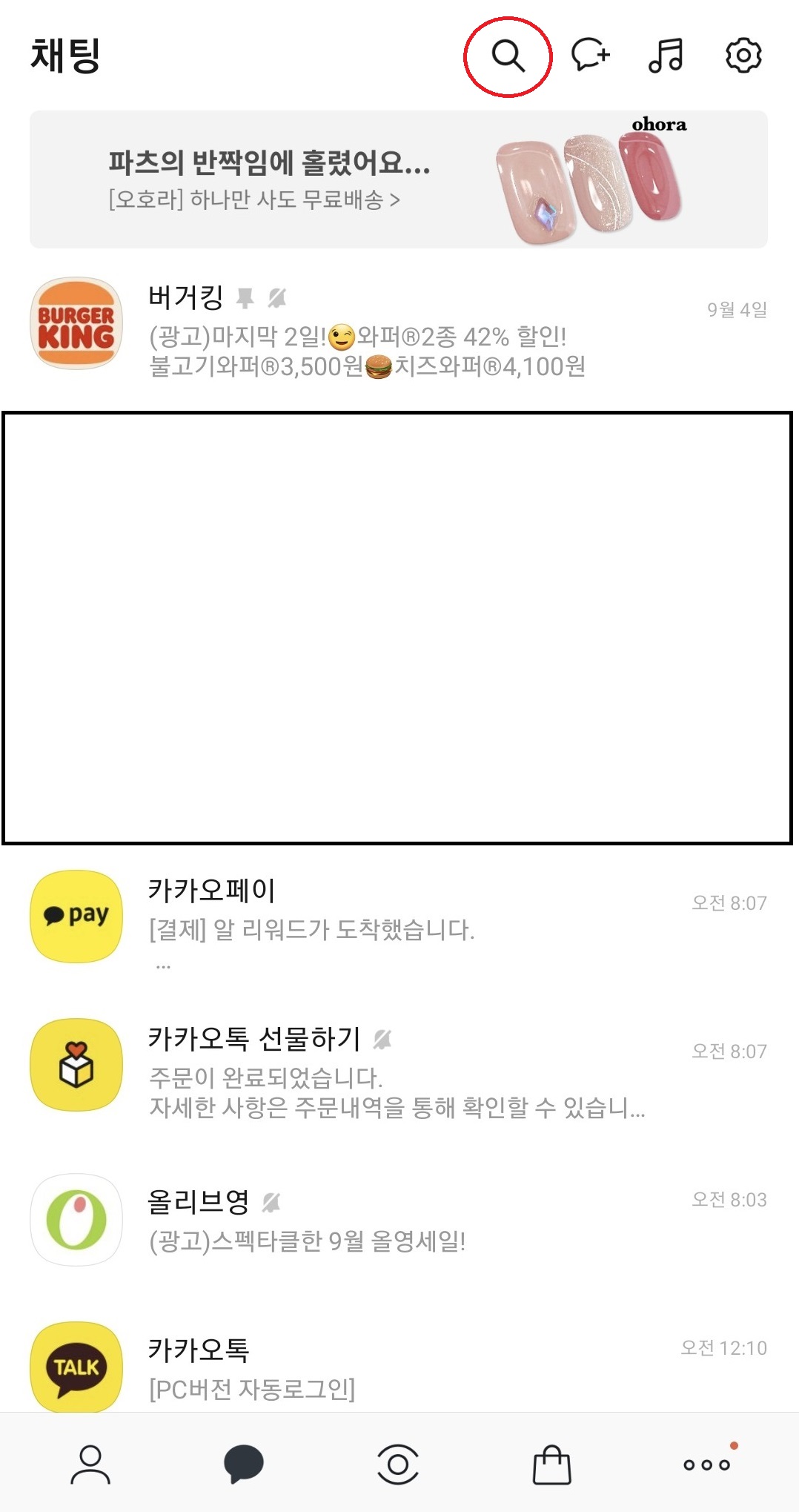 먼저 카카오톡을 실행하신 후 카카오톡 상단의 돋보기 이미지를 클릭 해 주세요. 그러면 검색을 할 수 있게 나오는데요, 국민비서 라고 입력을 하시면 국민비서 구삐 라는 채널이 보이실 거에요.