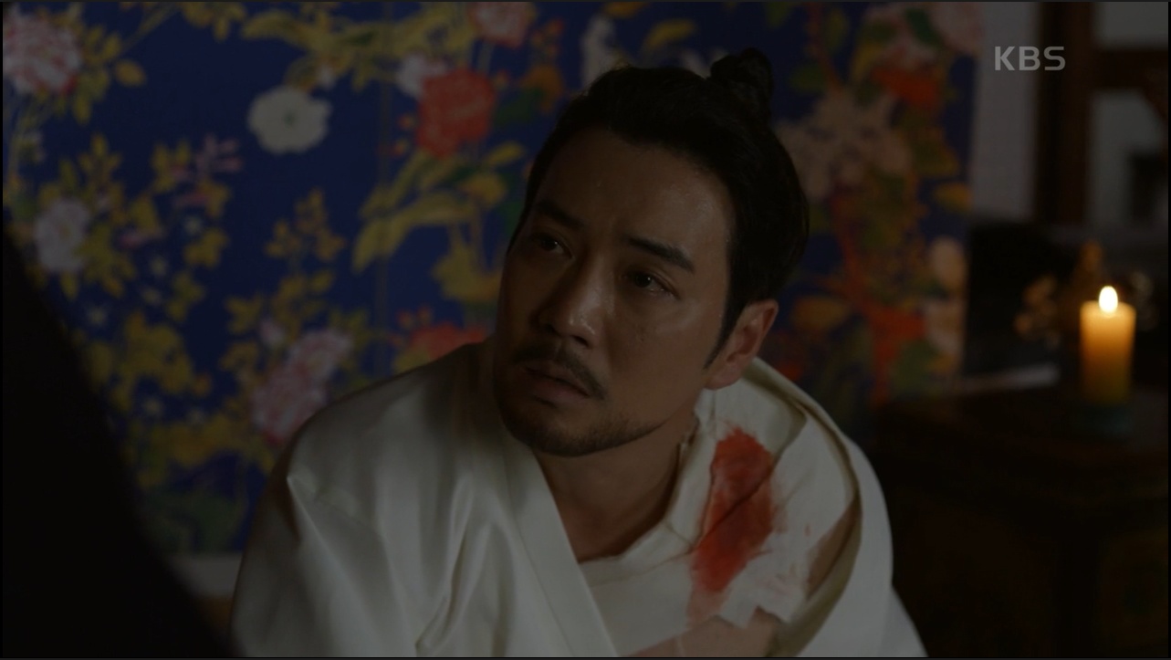 이방원은 의식을 잃고 앓아 누웠어요. 이성계는 본인 때문에 다쳤다며 민씨에게 미안해하는 모습이었죠.