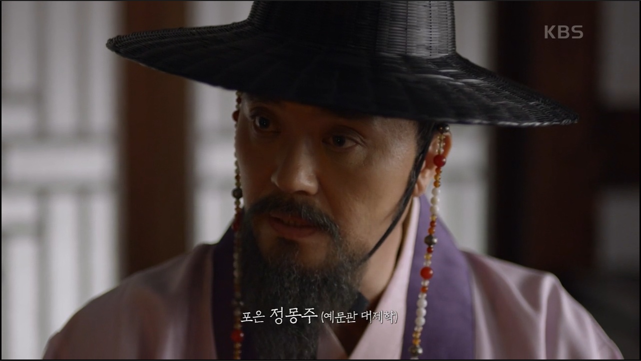 그 때 이색이 나타나 명분은 힘이 있는 자가 만들면 그만인거라며 언젠가는 이성계 대감이 용상을 차지할 것이라고 했어요. 정몽주는 그건 오해라며 이성계 대감이 그럴 마음이 있었다면 위화도에서 회군했을 때 이미 용상을 차지했을 것이라고 했죠. 이색은 만약 그랬다면 정말 역적이 되어 거센 반발에 직면했을 것이라며 그걸 피하려고 한 걸음씩 천천히 나아가고 있다는 것을 모르냐고 되물었습니다.
