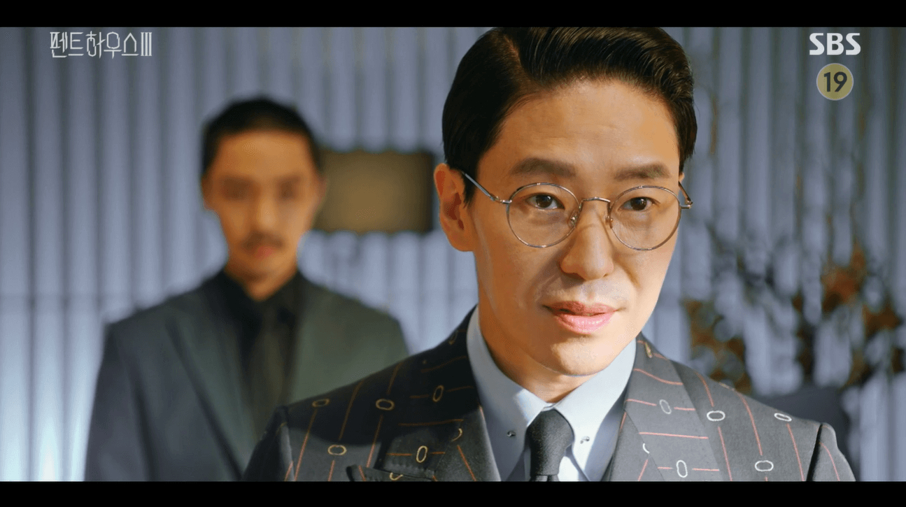 서로를 물어뜯을듯이 달려드는 주단태와 천서진. 주단태가 참석한 천수지구 개발 시공식 에서는 주단태가 로건을 죽였다는 증거 영상이 틀어졌고, 천서진의 이사장 취임식에서는 천서진이 전이사장 천명수를 죽였다는 문구가 적힌 그림이 공개됐었죠. 두 사람은 서로가 서로에게 뒷통수를 쳤다고 생각했습니다. 이들을 숨어서 지켜보고 있는 로건과 심수련. 이 두 사람이 꾸민 짓 이었겠죠.