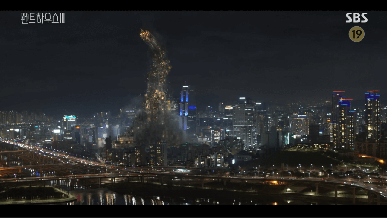 헤라 팰리스에서 폭탄이 터지면서 붕괴되는 장면으로 펜트하우스 시즌3 12회는 끝이 납니다.