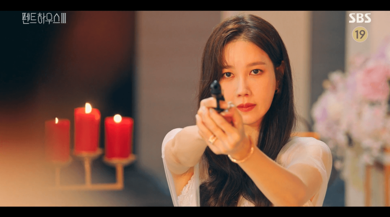 혼자 죽기 외로웠는데 심수련과 함께여서 좋다는 주단태. 주단태는 그 방아쇠를 당기는 순간 폭탄 버튼을 누를 것이고 그러면 헤라 팰리스는 사라질 것이라고 했어요.