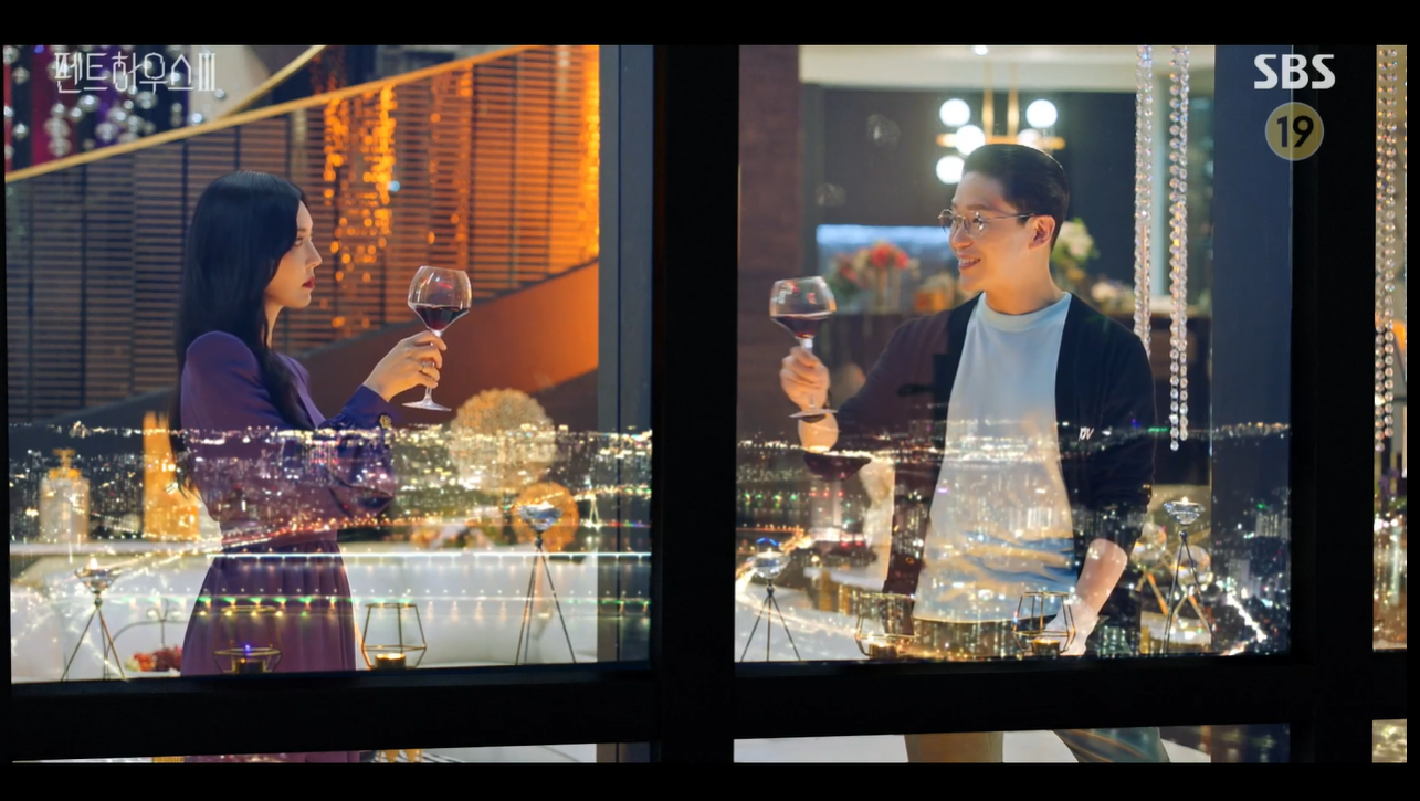 한번에 심수련, 백준기, 하윤철을 처리해버리고 축배를 드는 천서진과 주단태.