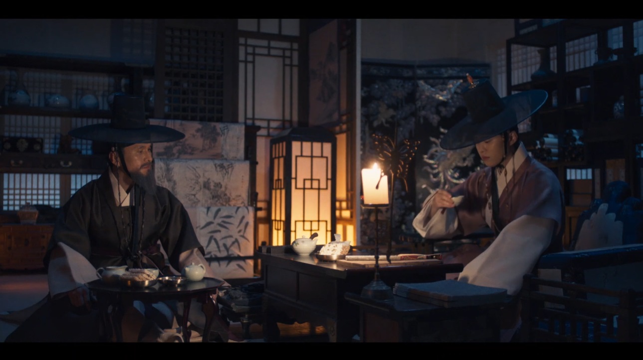 일월성을 떠보는 주향 대군. 일월성은 주향 대군이 세자에게 자객을 보낸 사람이라는 것을 꿰뚫고 있었습니다.