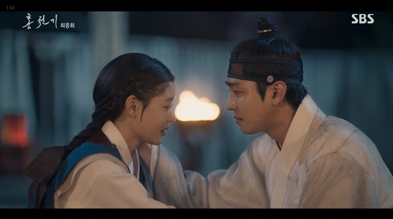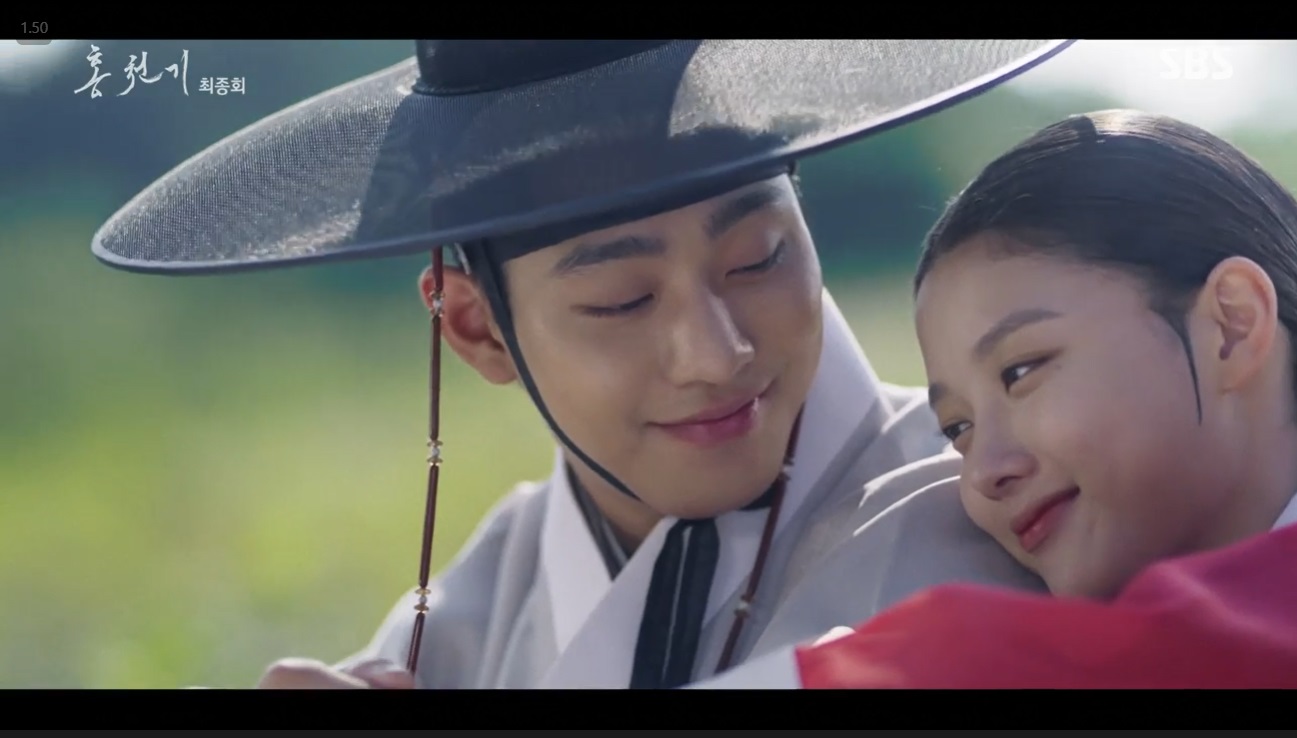 홍천기는 하람에게 그림을 선물했어요. 하람은 그림 값이라며 홍천기에게 입을 맞추죠. 두 사람은 원래 하나의 운명이었으니 오래오래 행복하게 살라는 삼신의 목소리가 들려왔습니다. 행복한 두 사람의 모습으로 홍천기 마지막회는 끝이 납니다.