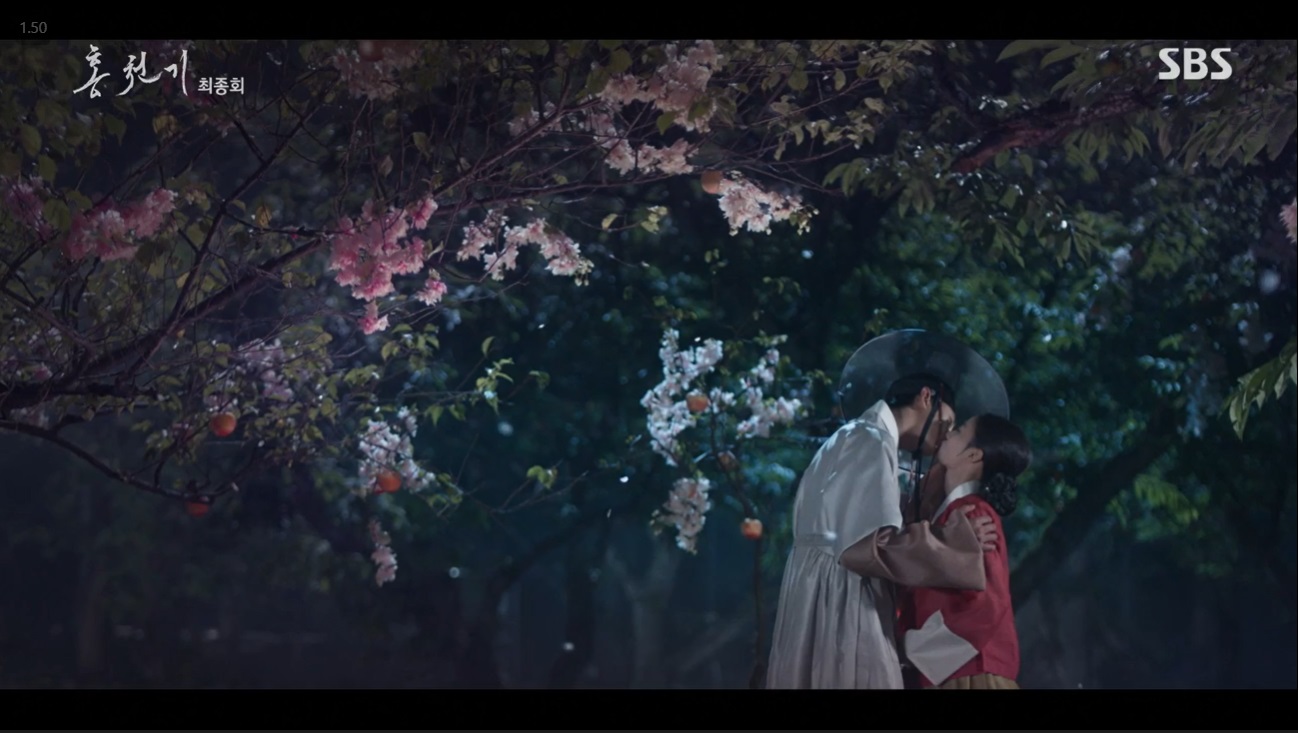 홍천기는 하람에게 그림을 선물했어요. 하람은 그림 값이라며 홍천기에게 입을 맞추죠. 두 사람은 원래 하나의 운명이었으니 오래오래 행복하게 살라는 삼신의 목소리가 들려왔습니다. 행복한 두 사람의 모습으로 홍천기 마지막회는 끝이 납니다.