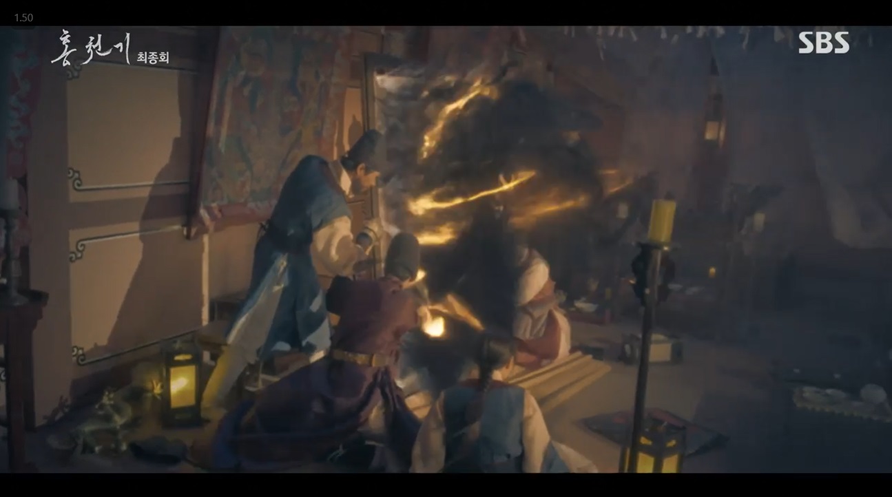 삼신과 호령이 마왕과 싸우는 사이 홍천기는 어용을 완성해야만 했습니다. 화차가 나타나 마왕이 다시 돌아올 것이라며 반드시 어용을 완성해야한다고 했죠.