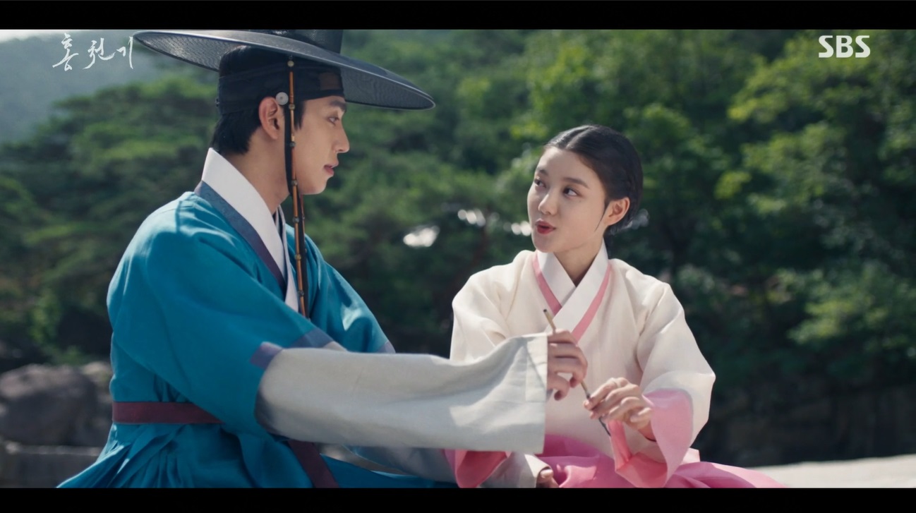 하람은 홍천기에게 초상화 하나를 그려달라고 부탁을 합니다. 홍천기가 고마워할 분이라고 하죠. 두 사람은 내일 계곡에서 만나기로 합니다. 홍천기는 몸이 좋지 않은 척 어용은 그리러 가지 않았고, 그저 다음날 하람과 만날 생각에 설레하고 있었습니다.