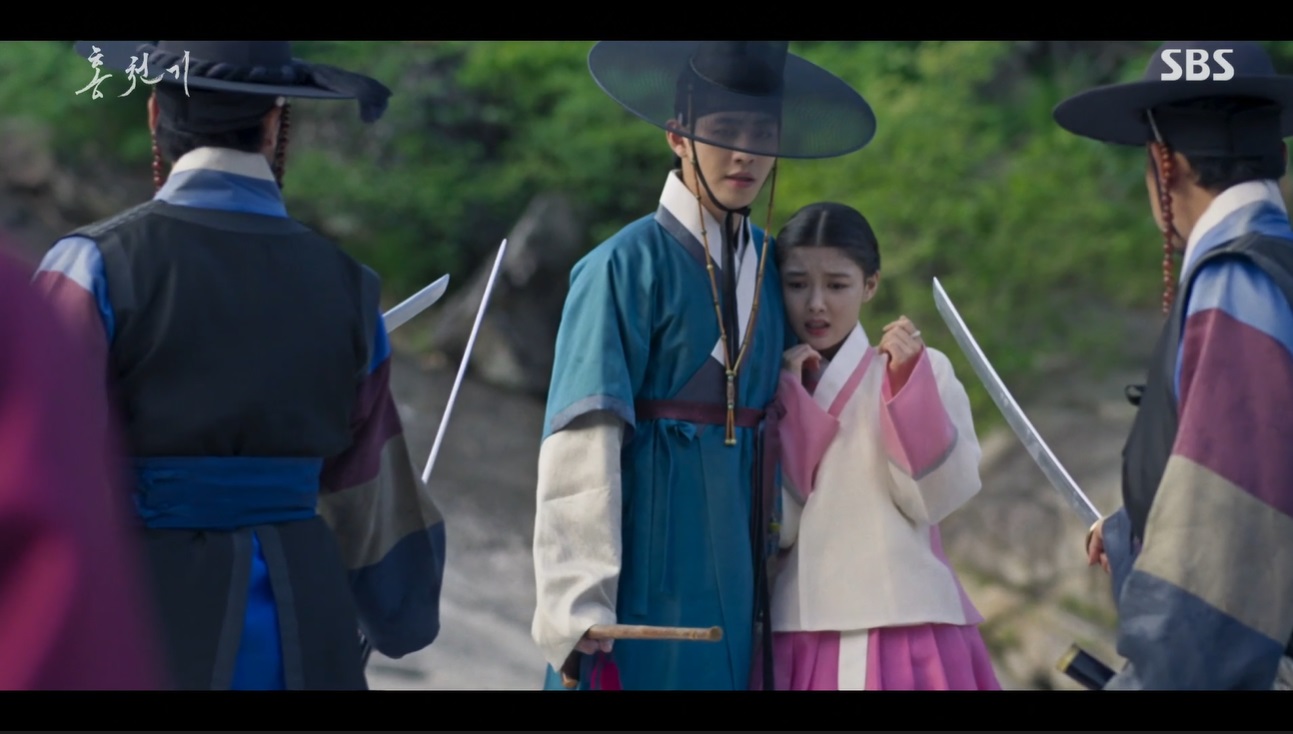 그 때 양명대군이 나타났습니다. 인왕산 금군사체의 용의자로 하람을 추포하러 왔다고 합니다. 하람의 앞을 막아서는 홍천기를 공격하는 관군들을 보호해주는 하람. 궁지에 몰린 두 사람의 모습으로 홍천기 10회는 끝이 납니다.
