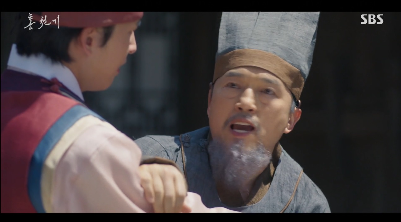 백유화단에 간윤국이 찾아와 홍천기의 그림을 사고싶다고 합니다. 오늘은 무조건 그림을 가져가야한다며 홍천기를 만나게 해달라 하죠. (간윤국은 홍은오와 함께 영종의 어용을 그렸던 화공입니다.)