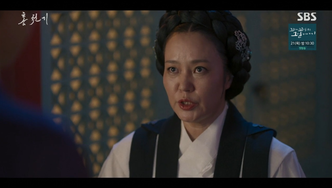 미수는 홍천기를 보러 왔어요. 마왕이 왜 홍천기의 눈을 탐냈는지 보기 위한 것이었죠. 미수는 어용을 서두르지 않으면 하람이 마왕에게 잠식당할 것이라며 협박했습니다.