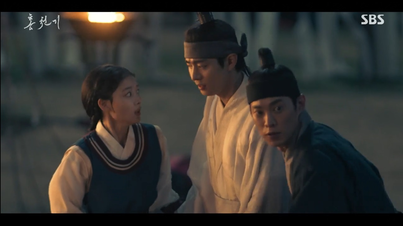 가마 문을 열라는 주향대군의 명령에 가마 문이 열리자마자 하람은 피묻은 손을 내보이며 뛰쳐나갔습니다. 모두의 관심은 하람에게 쏠렸고, 그 틈을 타 홍천기는 도망을 갈 수 있었습니다.
