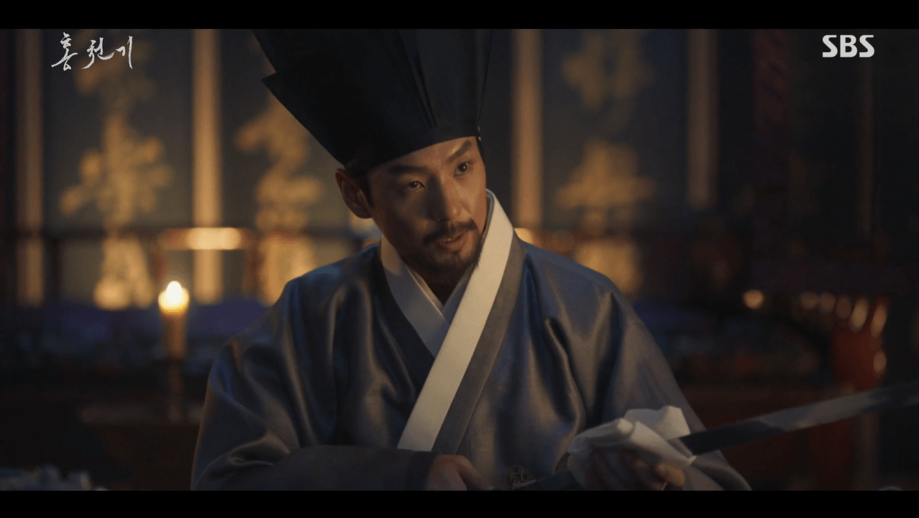 양명대군은 이 것이 단순한 호의가 아니라고 했어요. 어렸을 적 할아버지의 어용을 보고 감탄한 적이 있다고 하는 양명대군. 그 그림은 신령한 화공이 그린 것으로 그 화공의 핏줄을 성조까지 나서서 찾고 있다고 했죠. 그 신령한 화공이 홍은오라며 홍은오가 할아버지의 어용을 그리다 광증이 걸린게 아닐까 생각을 해 보았다고 했어요.